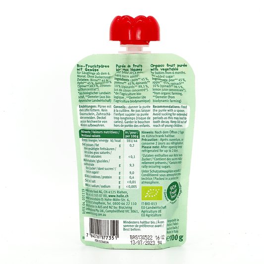 Holle Power Parrot : poire, pomme et épinards (6 mois et plus) - 6 sachets